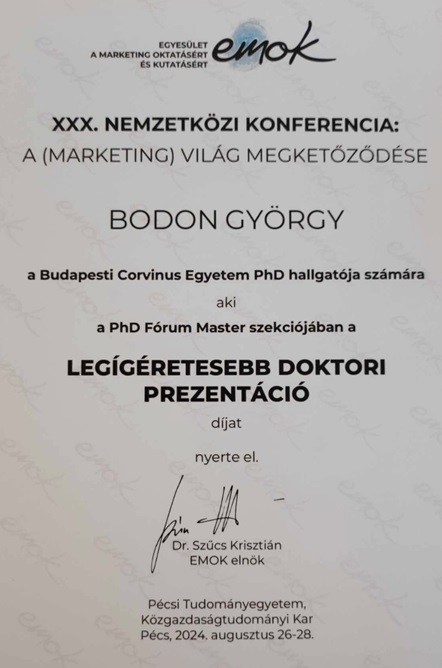 Köszönöm mindenki, szurkolók, partnerek, kollégáim, témavezetőim támogatását.